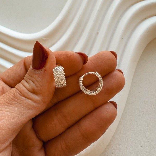 Argollitas con muchos brillitos plateadas