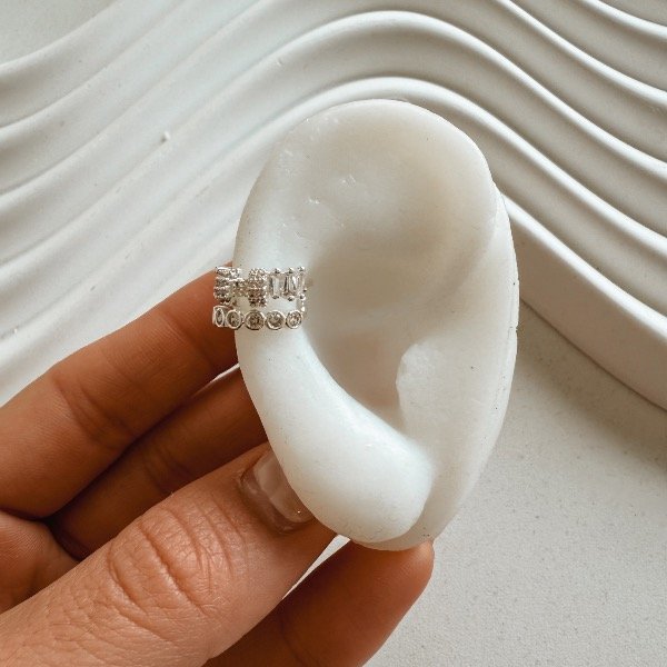 Aro ear cuff doble chain plateado