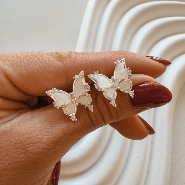 Aro pasante mariposa blanca con stras plateadas