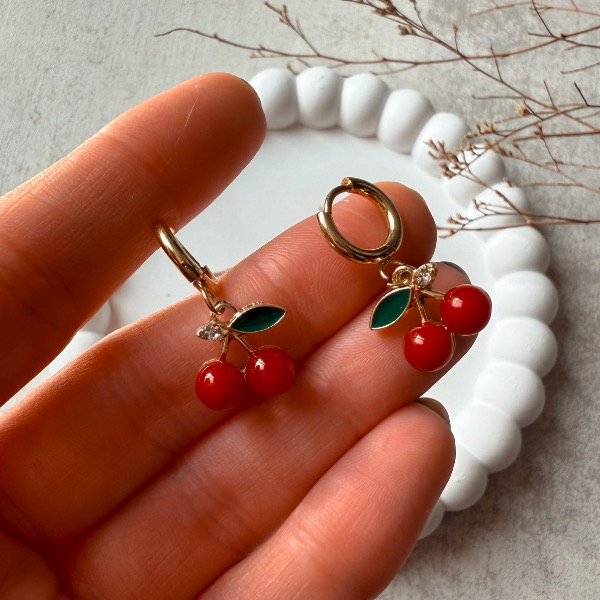 Argollitas chiquitas con dije de cereza rojas