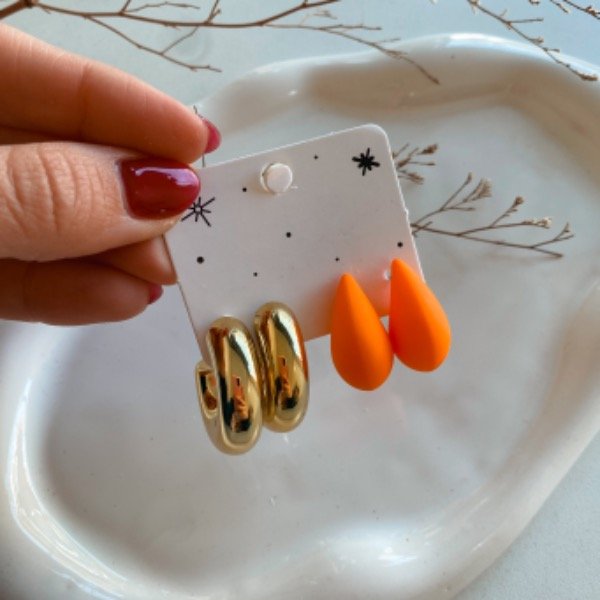 Set de aros Evaluna dorados y drops naranjas - Fantasia